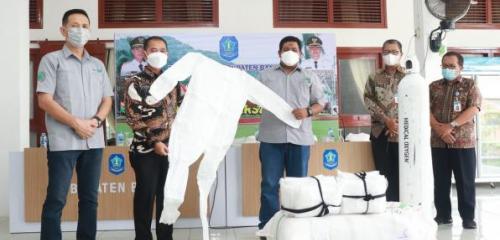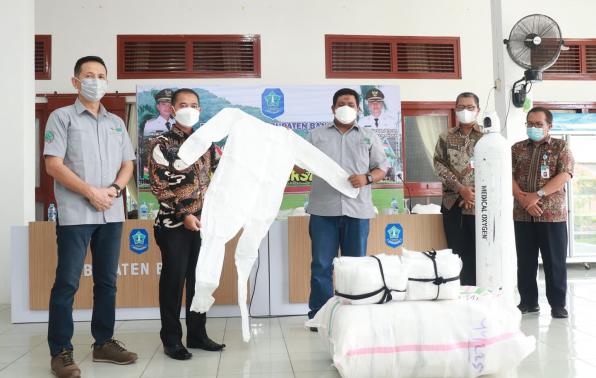 Sungailiat - Pemerintah Kabupaten Bangka kembali menerima bantuan dari para pengusaha dan investor dalam penanganan covid-19. Kali ini bantuan berupa 16 tabung oksigen dan 500 pakaian APD diterima Pemkab Bangka dari PT. Refined Bangka Tin (RBT) di Rumah Dinas Bupati Bangka, Kamis (2/9/2021).