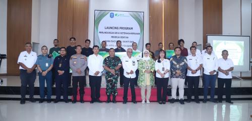 Pemberian kartu peserta BPJS Ketenagakerjaan di berikan secara simbolis kepada beberapa pekerja rentan yang hadir pada acara peluncuran program perlindungan BPJS Ketenagakerjaan, Rabu (25/06/2025) bertempat di Gedung Pertemuan GRHA Maras.