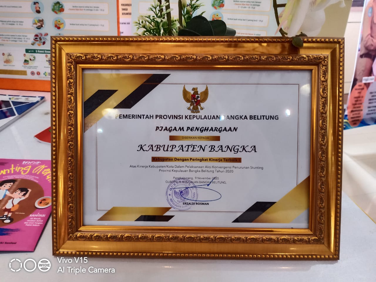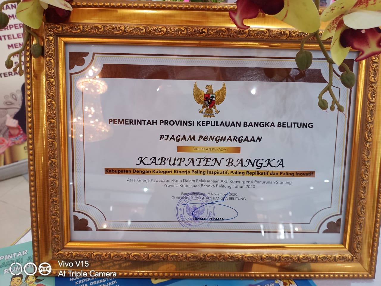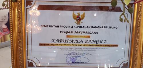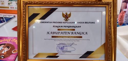 Kabupaten Bangka berhasil mengelola penurunan stunting dengan sangat baik dan bahkan terbaik di Indonesia. Stunting Kabupaten Bangka menurun drastis dari 32,23 persen di tahun 2013 menjadi hanya 1,87 persen di bulan Februari 2021. Atas capaian tersebut, Gubernur Provinsi Kepulauan Bangka Belitung memberikan penghargaan kepada Pemkab Bangka sebagai Pemda dengan kinerja pengelolaan stunting terbaik di Bangka Belitung. Penghargaan diberikan langsung oleh Wakil Gubernur Abdul Fatah kepada Wakil Bupati Bangka, Syahbuddin di Gedung Mahligai Rumah Dinas Gubernur, Selasa, 15 Juni 2021. Penghargaan yang diberikan adalah penghargaan sebagai terbaik pertama untuk kategori kinerja pengelolaan stunting dan Penghargaan sebagai kabupaten Paling Inspiratif, Paling Replikatif dan Paling inovatif.