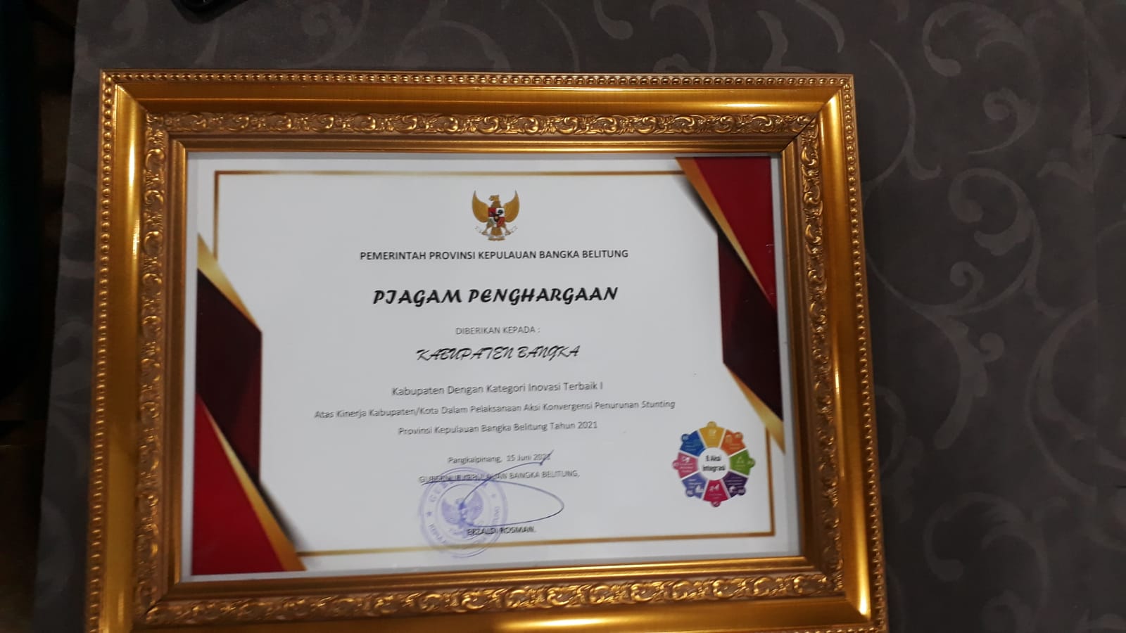 Tahun 2022, Kab. Bangka kembali meraih penghargaan Terbaik I dalam “Pengelolaan Stunting”. Predikat ini telah tiga tahun berturut diperoleh Kabupaten Bangka, tepatnya sejak tahun 2020, yang merupakan tahun pertama dilakukannya penilaian terhada kinerja 8 (delapan) aksi konvergensi stunting. Penilaian ini dilaksanakan oleh Badan Perencanaan Pembangunan, Penelitian Pengembangan Daerah Provinsi Kepulauan Bangka Belitung melibatkan Tim panelis dan Tim Juri dari berbagai kalangan baik dari kalangan birokrat, akademisi dan lembaga profesi, disaksikan oleh pihak Dirjen. Bina Pembangunan Daerah Kementerian Dalam Negeri Republik Indonesia dan Bank Dunia.