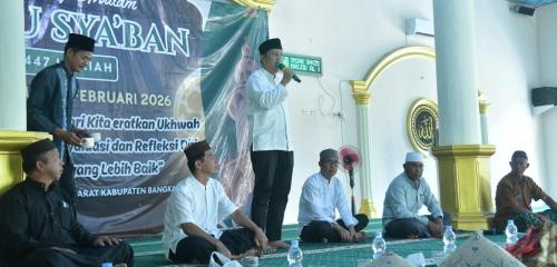 BABELPOS.ID, ​MENDO BARAT – Bupati Bangka, Fery Insani, menghadiri peringatan malam Nisfu Sya’ban 1447 Hijriah yang dipusatkan di Masjid Al-Huda, Desa Penagan, Kecamatan Mendo Barat, Minggu (1/2/2026).