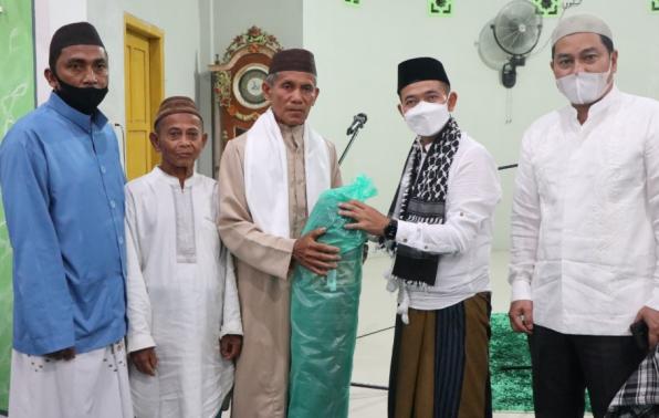 Merawang - Bupati Bangka, Mulkan, SH MH, dalam kegiatan safari Ramadhan perdananya kali ini menyerahkan bantuan sarana Masjid, Kamis (15/04/2021) di Masjid Farhan Kamal Desa Air Anyir. Tak hanya itu saja, sejumlah insentif pun diberikan kepada Imam dan Marbot Masjid.