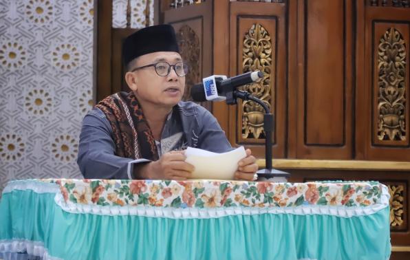 Sungailiat - Wakil Bupati Bangka Syahbudin S.IP M.Tr.Ip menyampaikan kuliah tujuh menit (kultum) menjelang berbuka puasa dan Salat Magrib pada hari ke sembilan Ramadan 1444 H/2023 di Masjid Agung Sungailiat, Jum'at (31/03/2023).