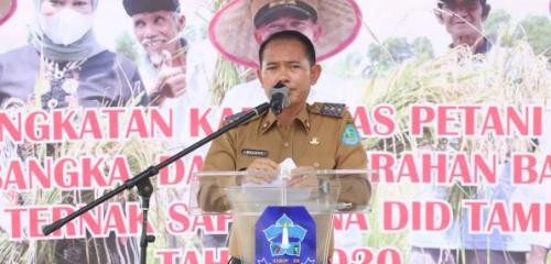 "Saat ini percetakan lahan sawah di Kabupaten Bangka sebanyak 2.948,41hektar, tetapi yang baru termanfaatkan baru sebatas 1991,1 hektar. Ini menandakan pemanfaatan belum maksimal sehingga kami meminta kepada seluruh petani melalui Dinas Pertanian untuk memaksimalkan sumber ini," ujar Bupati Bangka, Mulkan SH MH.