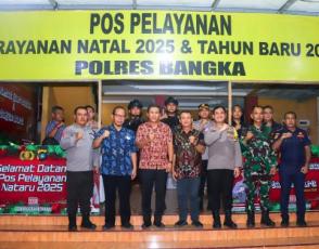 Sungailiat – Bupati Bangka Fery Insani dan Wakil Bupati Bangka Syahbudin bersama Sekda Bangka Thony Marza dan Forkopimda Kabupaten Bangka melakukan peninjauan keamanan perayaan natal 2025 dan tahun baru 2026, Rabu (24/12/2025) di Posko Pelayanan...
