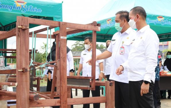 Selain memberikan sarana bagi para pelaku usaha, Pemeeintah Kabupaten Bangka juga menyerahkan sejumlah bantuan usaha. Diantaranya yaitu mesin penenenun, mesin jahit, penggiling daging, timbangan, coolbox, alat lukis serta alat pendukung induatri lainnya.