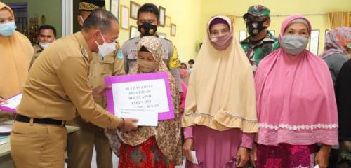 Merawang - Menjelang bulan suci Ramadhan tahun 1442 H, sebanyak 4.793 masyarakat di Kabupaten Bangka menerima penyaluran dana Bantuan Langsung Tunai (BLT) Dana Desa, Senin (12/4/2021). Penyerahan secara simbolis dilakukan Bupati Bangka di Desa Kimak dan Jurung Kecamatan Merawang.