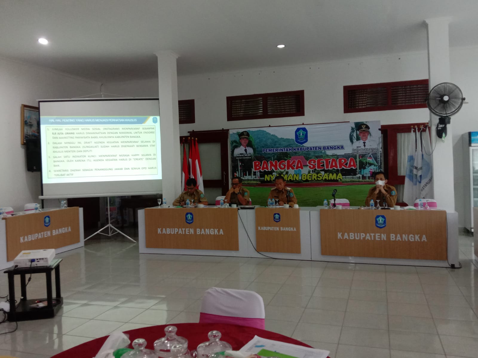 Lebih lanjut, Mulkan juga menyampaikan bahwa Bangka ekspo juga akan diresmikan oleh Menparekraf yang memiliki popularitas di kalangan pengusaha, investor, dan negara-negara di dunia. Ini merupakan kesempatan dalam mempromosikan Kabupaten Bangka. Kepada seluruh kepala Perangkat Daerah agar memeriahkan acara Bangka Expo yang akan dilaksanakan pada 22 Juli 2022.