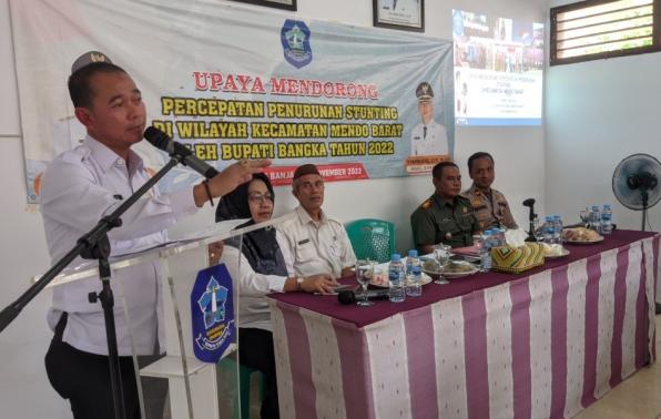 Mendo Barat - Bupati Bangka, Mulkan, SH MH, menghimbau kepada para Kepala Desa (Kades) di Kecamatan Mendo Barat melakukan intervensi pengawalan kepada masyarakat setempat. Hal ini bertujuan sebagai membantu peranan Pemerintah Daerah dan Pemerintah Pusat dalam mewujudkan zero stunting.