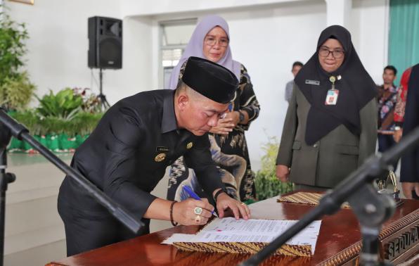 Sungailiat - Bupati Bangka Mulkan SH., MH, didampingi Wakil Bupati Bangka Syahbudin SIP., M. Tr. IP, Syahbuin, resmi melantik 87 pejabat Struktural di lingkungan Pemerintah Kabupaten Bangka, bertempat di gedung sepintu sedulang, Kamis (05/01/2023).