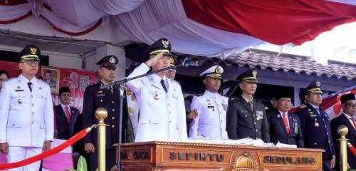 Pada pelaksanaan upacara peringatan detik detik proklamasi dan pengibaran bendera, Bupati Bangka H. Mulkan SH., MH bertindak sebagai Inspektur Upacara yang pagi itu juga diikuti oleh ratusan peserta yang terdiri dari jajaran TNI, Polri, Satuan Polisi Pamong Praja, ASN di lingkungan Pemkab Bangka serta pelajar dan mahasiswa se-Kabupaten Bangka.