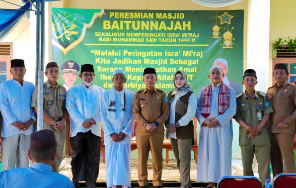 Mendobarat - Bupati Bangka Mulkan sH., MH Meresmikan serta penandatangan prasasti Masjid Baitunnajah Desa Petaling Banjar, bertempat Masjid Baitunnajah Desa Petaling Banjar Kecamatan Mendo Barat, Senin (27/02/2023).