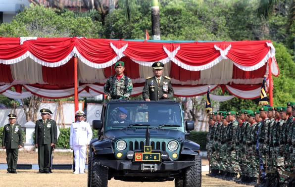Upacara perayaaan HUT ke-78 TNI, dipimpin Komandan Korem 045/ Garuda Jaya, Brigjen TNI A. Dedy Prasityo, S.I.P.